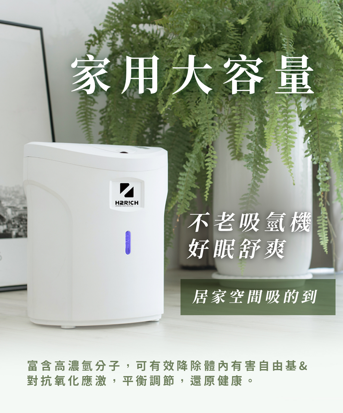全球首款家電外型,以純水電解方式設計的大氣量吸氫機,適合固定在辦公室工作或睡前居家使用。 氫氣產量每分鐘500毫升,美國Tywon Hubbard氣量測試 氫氣純度高於99.999%,SGS檢驗測試 擁有歐盟CE及日本PSE電器認證。