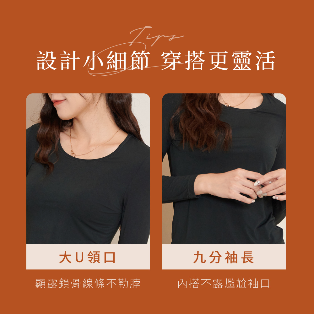 輕薄蓄暖第一選擇,輕量磨毛層高效鎖溫,大領口及九分袖長,讓搭配更靈活,多色系選擇內搭外穿一次滿足。