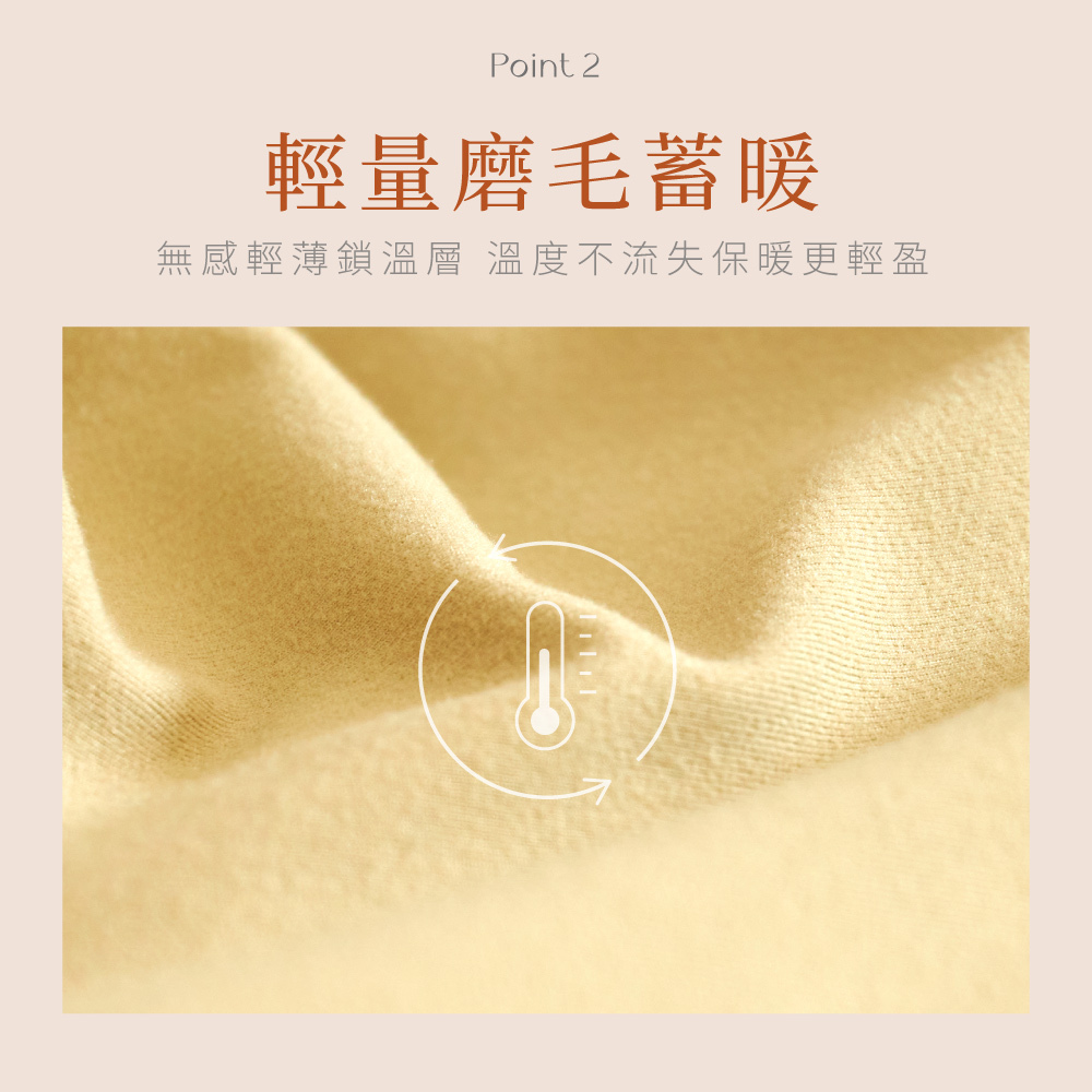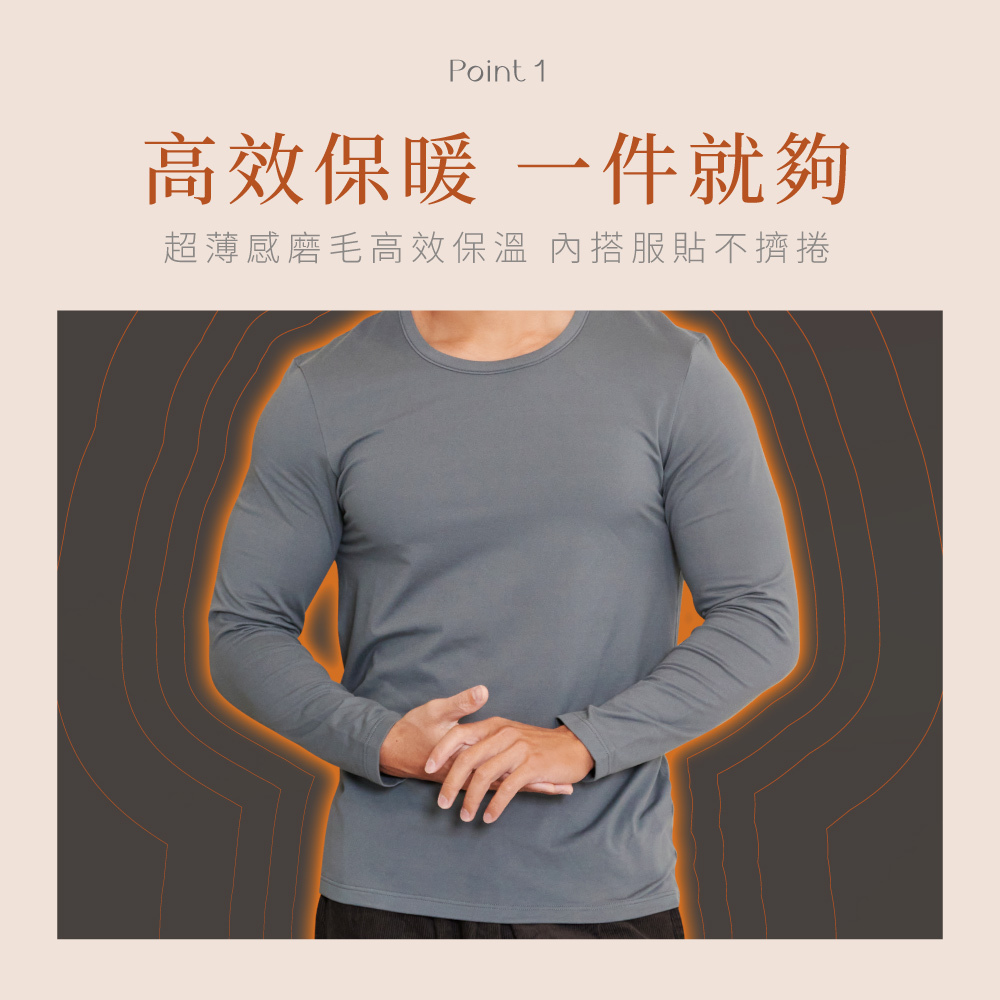 輕薄蓄暖第一選擇,輕量磨毛層高效鎖溫,大領口及九分袖長,讓搭配更靈活,多色系選擇內搭外穿一次滿足。