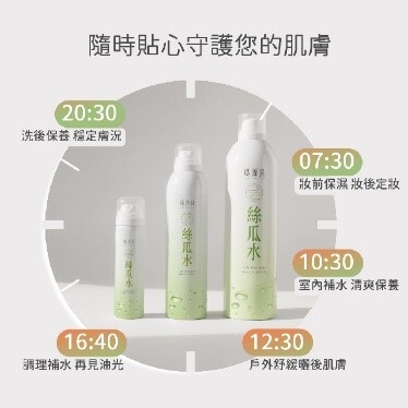 截取絲瓜莖蔓汁液 增加肌膚含水量。細緻噴頭,均勻噴灑