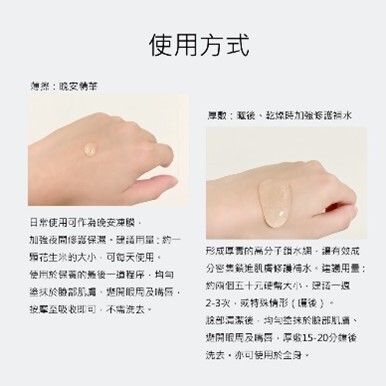 添加保濕因子、保濕有感。適用膚質:ㄧ般性及混和性膚質適用。